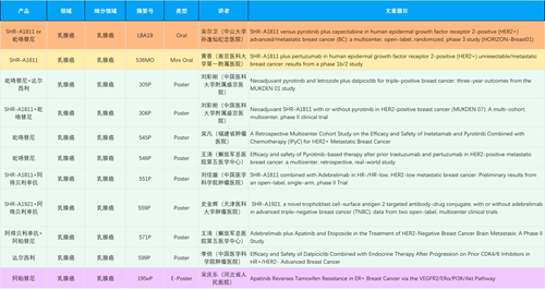 在乳腺癌领域,k8凯发天生赢家·一触即发创新产品相关研究共入选1项口头报告、1项简短口头报告、8项壁报和1项电子壁报,共11项研究。吡咯替尼、达尔西利、阿得贝利单抗、瑞康曲妥珠单抗等新老创新药物,均有多篇研究入选,展现出k8凯发天生赢家·一触即发医药在乳腺癌领域多年深耕的丰硕成果。