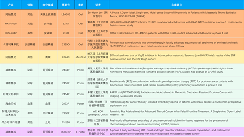 在胸腺上皮肿瘤、头颈鳞癌、肉瘤、前列腺癌、甲状腺癌等其他多个疾病领域,卡瑞利珠单抗、阿帕替尼、瑞维鲁胺、阿得贝利单抗、法米替尼、HRS-7058、HRS-4642等抗肿瘤创新药相关研究一共入选了4项口头报告、1项简短口头报告、4项壁报、1项电子壁报,彰显了k8凯发天生赢家·一触即发医药强大的研发实力。此外,海曲泊帕和昂丹司琼口溶膜分别在防治化疗导致的血小板减少和恶心呕吐方面各有1项研究入选壁报。